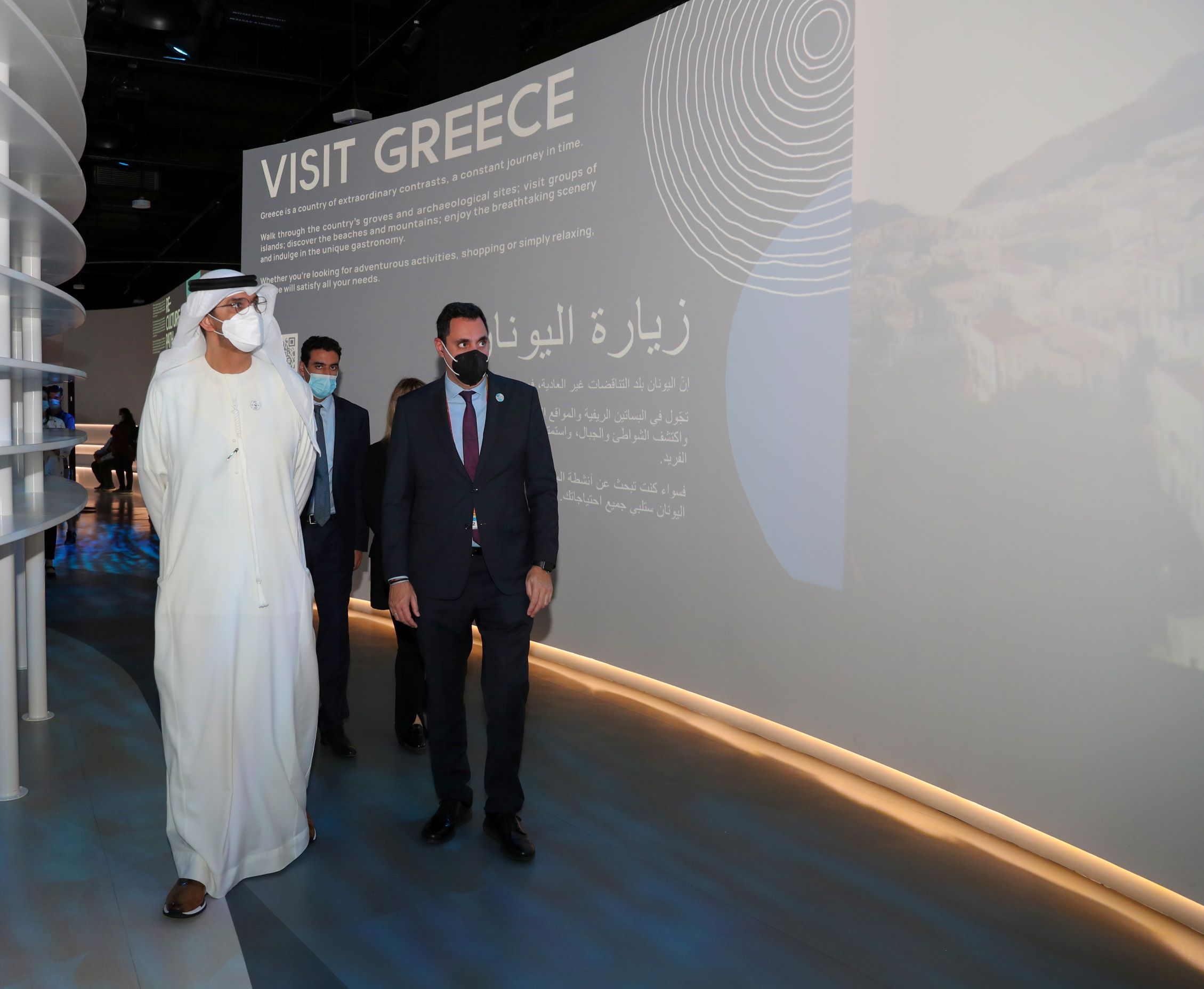 وزير الصناعة والتكنولوجيا المتقدمة يزور جناح اليونان في "إكسبو 2020 دبي" ويطلع على الابتكارات ويناقش الفرص الاقتصادية والتنموية