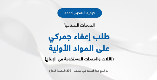 من خلال هذه الخدمة يمكنك التقدم بطلب الموافقة على إعفاء الآلات، والمعدات، أو المواد الأولية المسجلة مسبقاً في نظام الوزارة من الرسوم الجمركية.