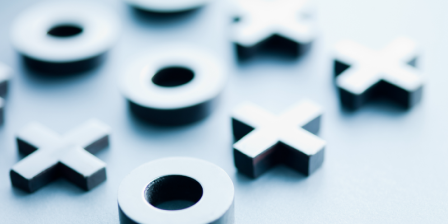 لعبة إكس-أو تهدف إلى الحصول على ثلاثة على التوالي.